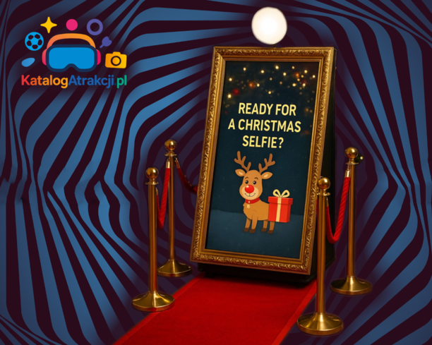 Wprowadź uczestników w wyjątkowy, świąteczny nastrój dzięki Fotolustru Świątecznemu – interaktywnej atrakcji, która łączy nowoczesną technologię z klimatem Bożego Narodzenia. To eleganckie, dotykowe lustro w efektownej ramie zachęca gości do wspólnego pozowania i tworzenia niezapomnianych zdjęć w świątecznej oprawie.