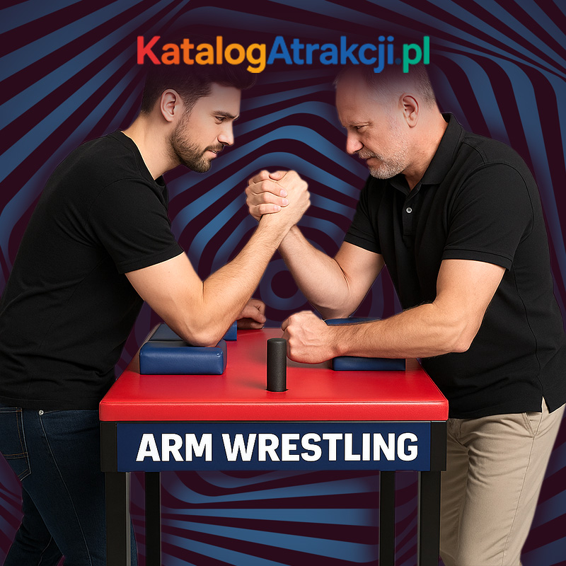 Kto silniejszy? 🔥 Czas to sprawdzić! Stół do Arm Wrestlingu to klasyczna, a zarazem niezwykle emocjonująca atrakcja, która zawsze przyciąga uwagę i wywołuje sportowego ducha rywalizacji. Uczestnicy stają naprzeciw siebie, chwytają dłonie i walczą o zwycięstwo – wszystko na profesjonalnym, stabilnym stole zaprojektowanym specjalnie do siłowania się na rękę.